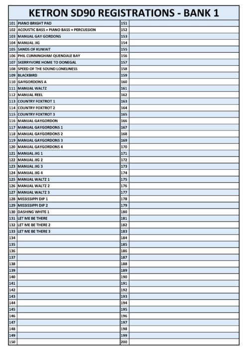 (Please note direct from Ketron the machine has no registrations these are our custom registrations)