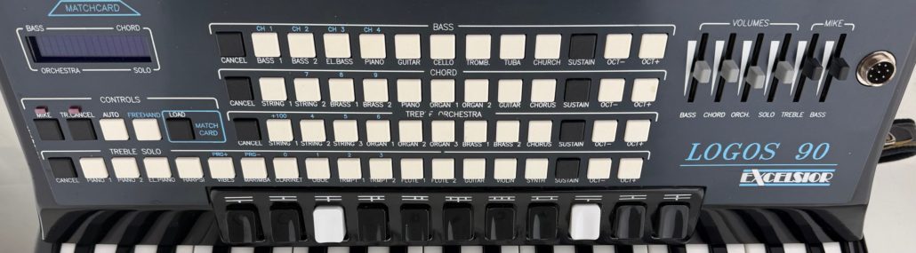 41 Key 120 Bass 4 voice, LMMM, Scottish Musette tuning, Full MIDI & Mics, Weight 11.2KG, 11 Treble 3 Bass couplers