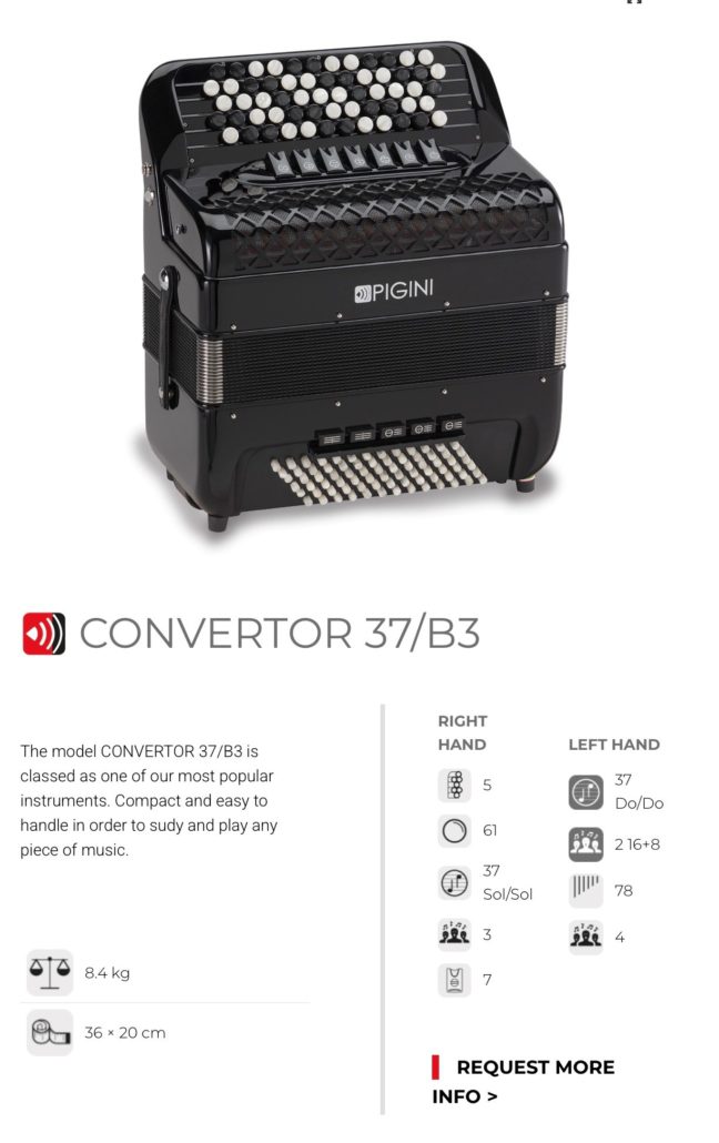 Pigini Free Bass Convertor Mod :- 37/B3 Accordion in good condition